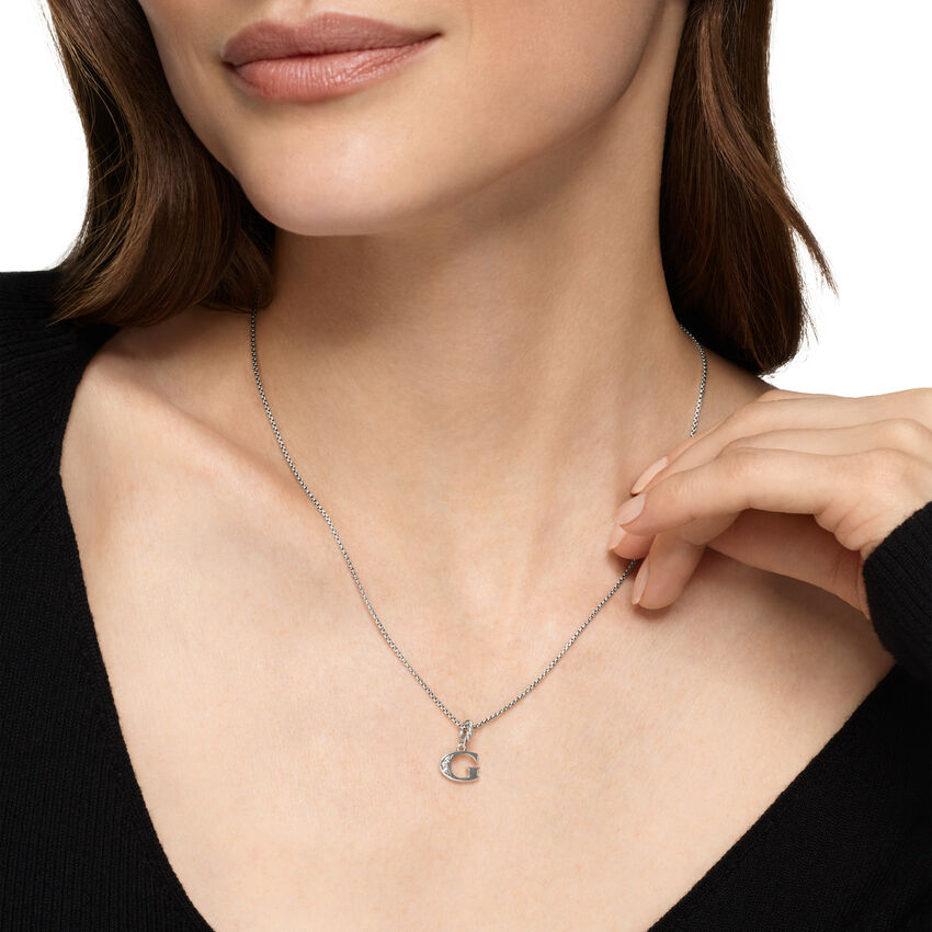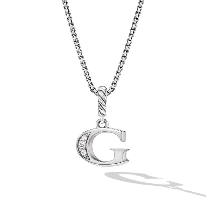 Pavé Initial Pendant Necklace in Sterling Silver with Diamond G | Lorilil Jewelers