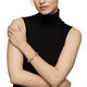 Use a soft cloth to gently wipe clean, then remove any remaining impurities with mild diluted soap. Rinse with warm water and dry thoroughly before storing in the provided jewelry pouch. Do not use abrasive cleaners, steamers or ultrasonic machines.