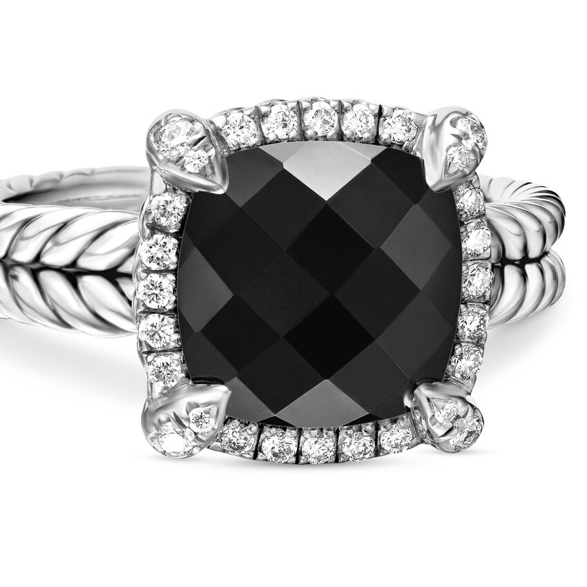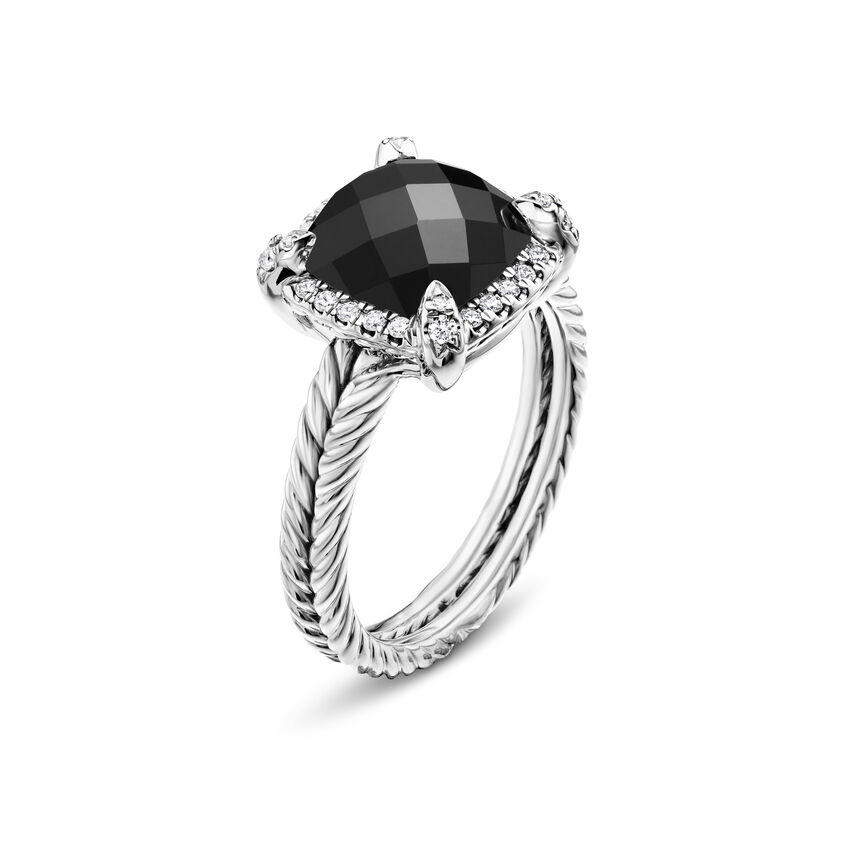 Sterling silver • Black onyx, 2.50 total carat weight, Stone, 9mm- Pavé diamonds, 0.14 total carat weight • Ring, 12mm