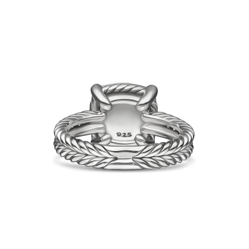Use the white side of the provided David Yurman polishing cloth to gently wipe silver portions clean. Remove any remaining tarnish or impurities with mild diluted soap and warm water. Dry thoroughly before storing the design in its jewelry pouch.