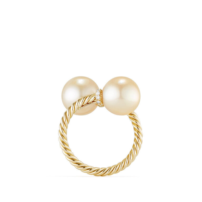 Solari Bypass Ring with Diamonds and South Sea Golden Pearls in 18K Gold | Lorilil Jewelers
