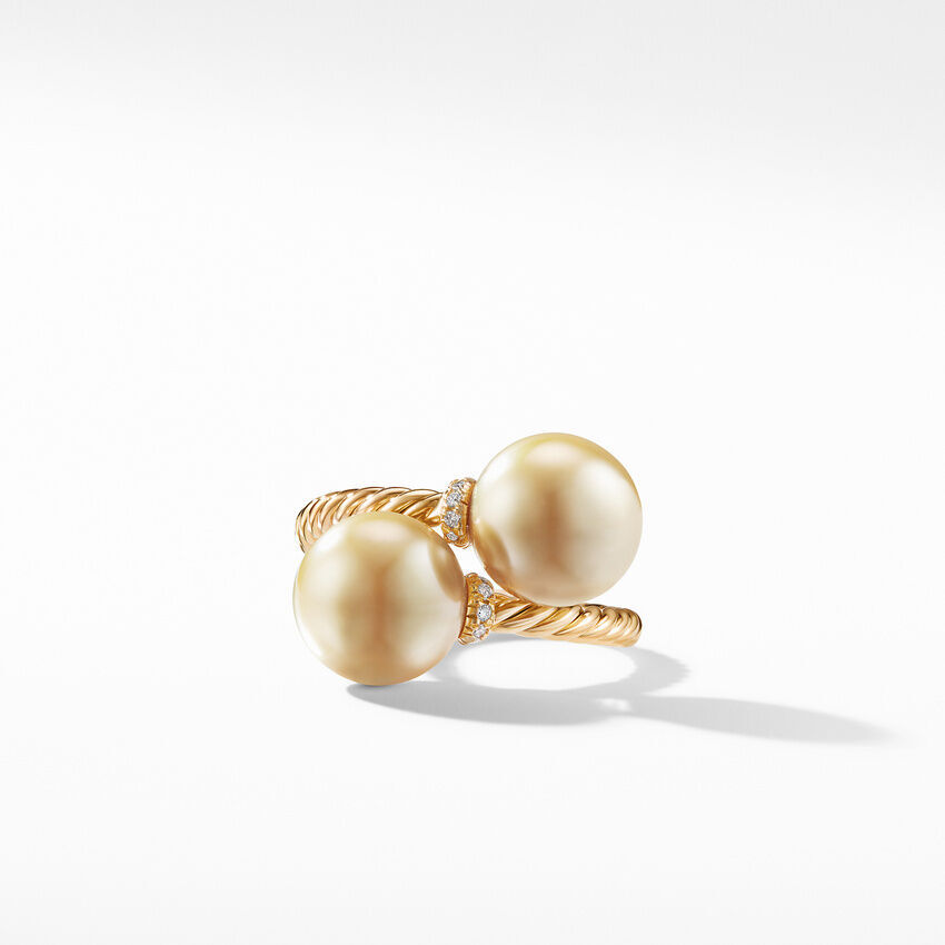 Solari Bypass Ring with Diamonds and South Sea Golden Pearls in 18K Gold
